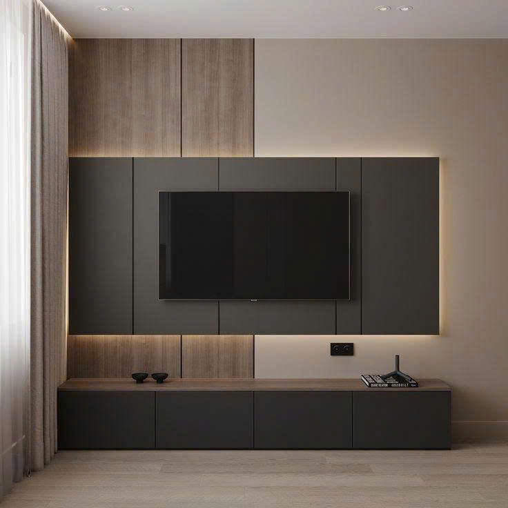 - Vách tivi không chỉ là nơi gắn màn hình mà còn kết hợp lưu trữ, trang trí.
