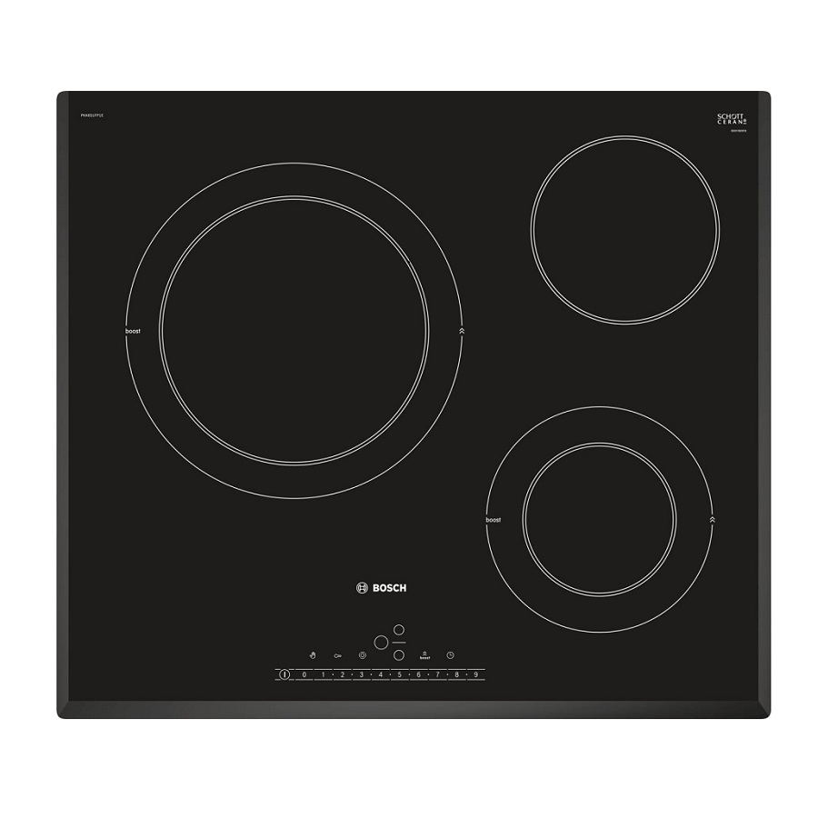 Bếp điện Bosch PKK651FB1E có 3 vùng nấu, được sản xuất tại Đức.