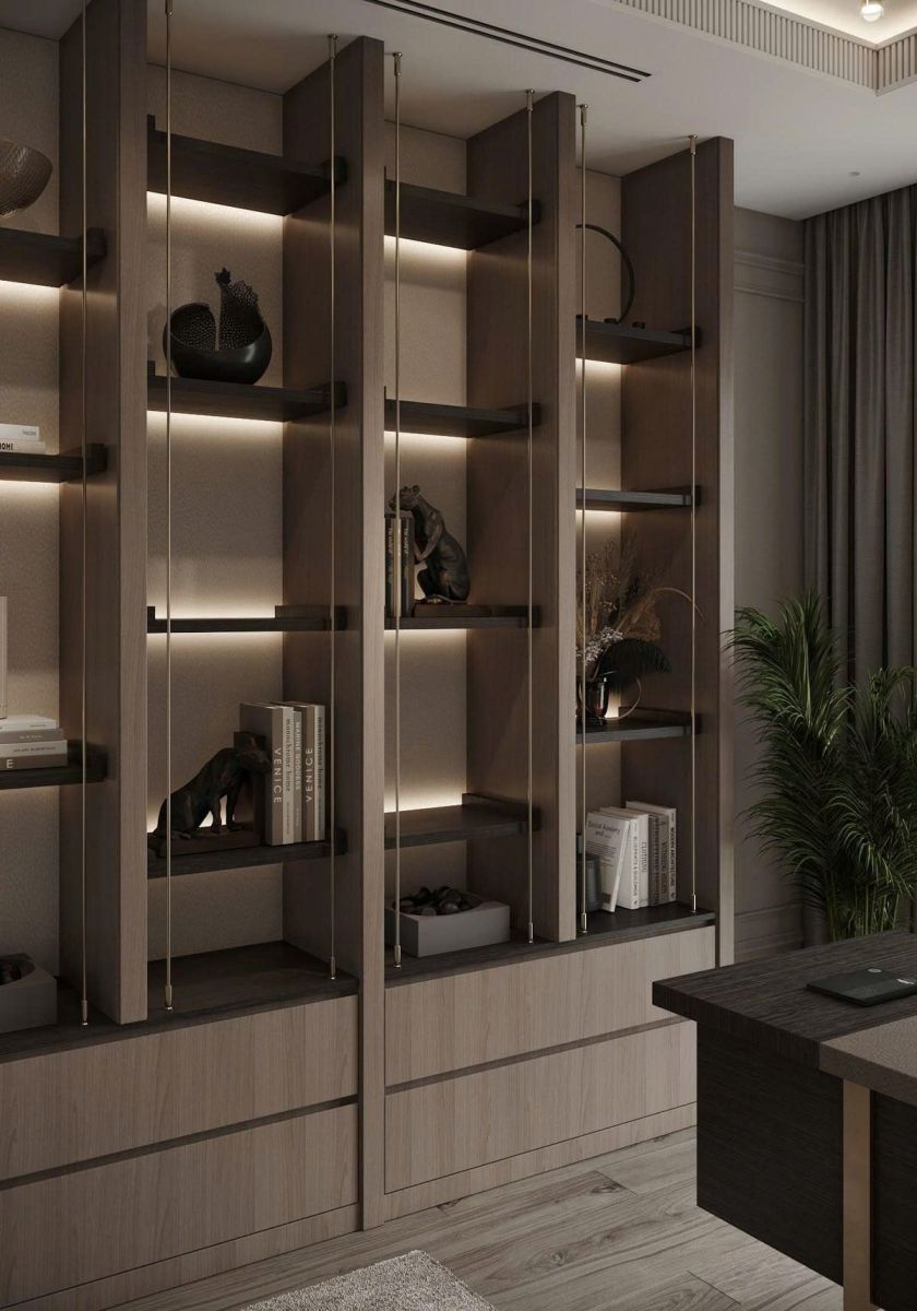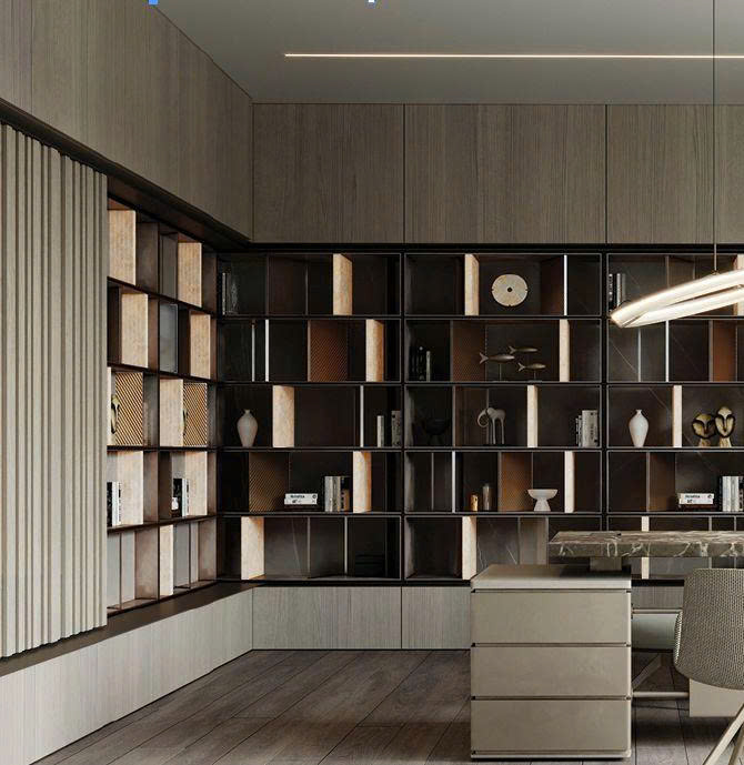 - Kệ kết hợp tủ: vừa trưng bày vừa lưu trữ.