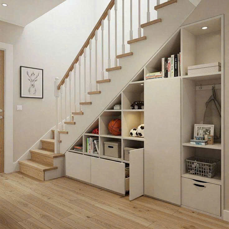 - Gầm cầu thang còn phù hợp làm kho lưu trữ: