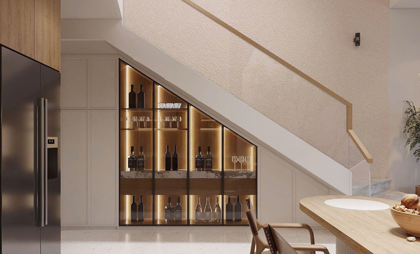 6. Tủ rượu gầm cầu thang – Điểm nhấn sang trọng
