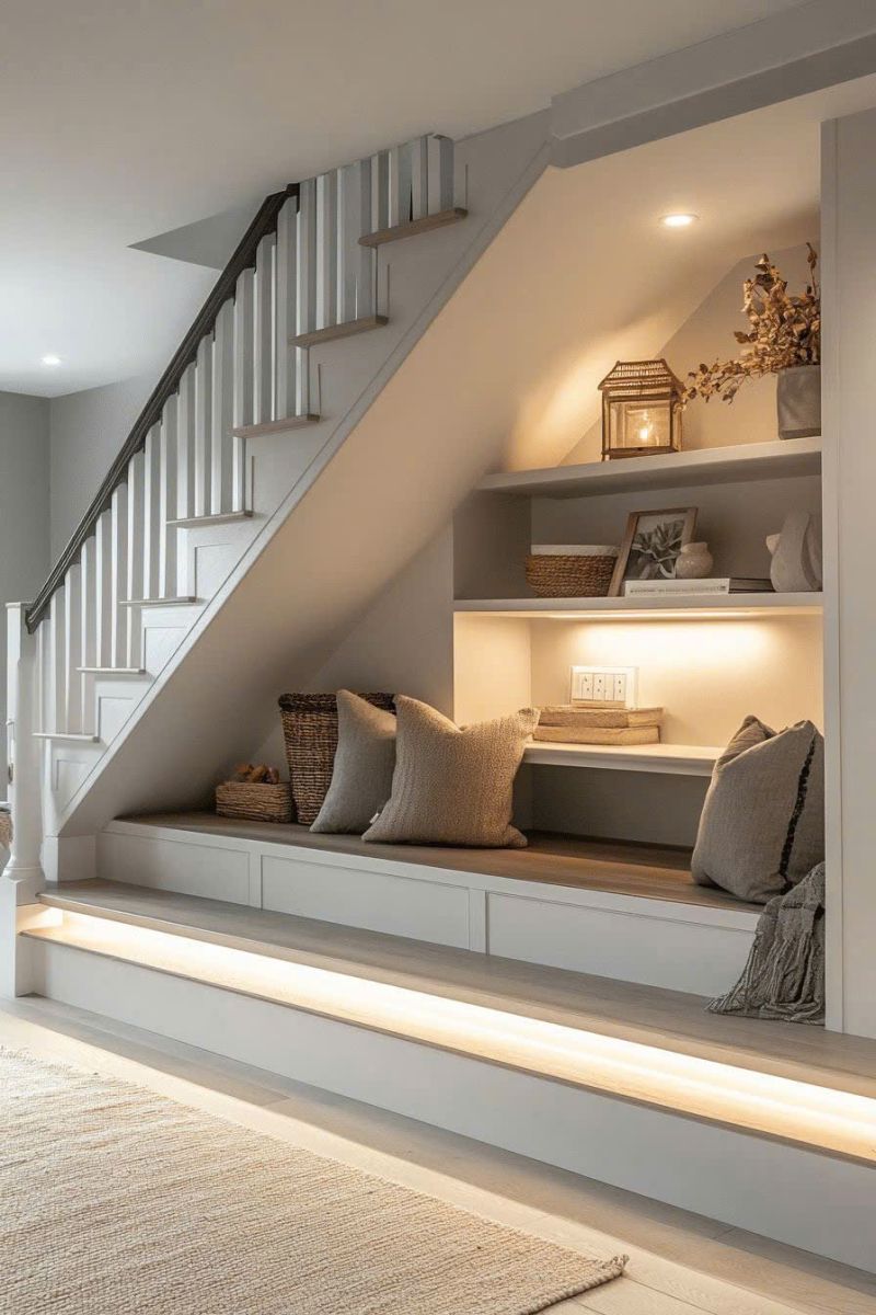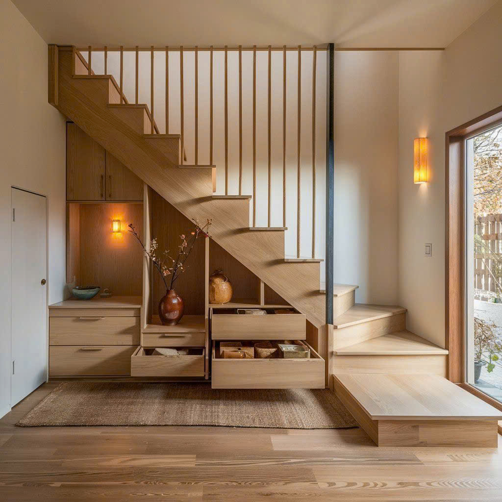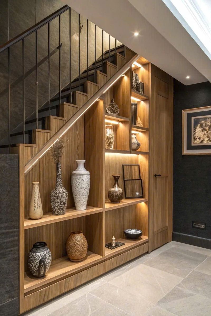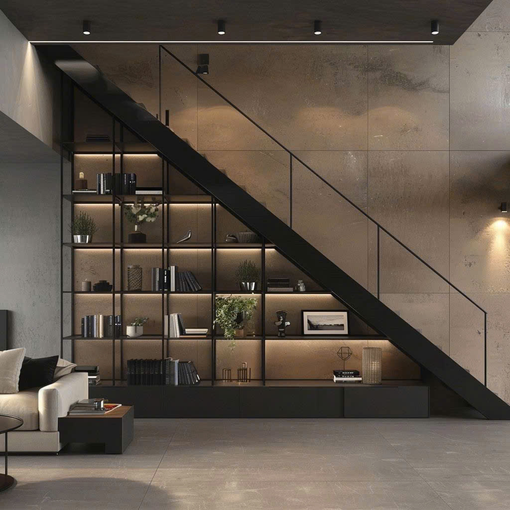 Gầm cầu thang từng ít được chú ý, nhưng trong thiết kế 2025, khu vực này trở thành “kho báu” để tạo nên không gian thông minh, tiện nghi và sang trọng.