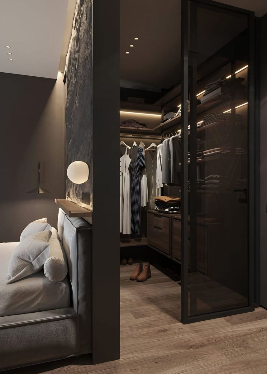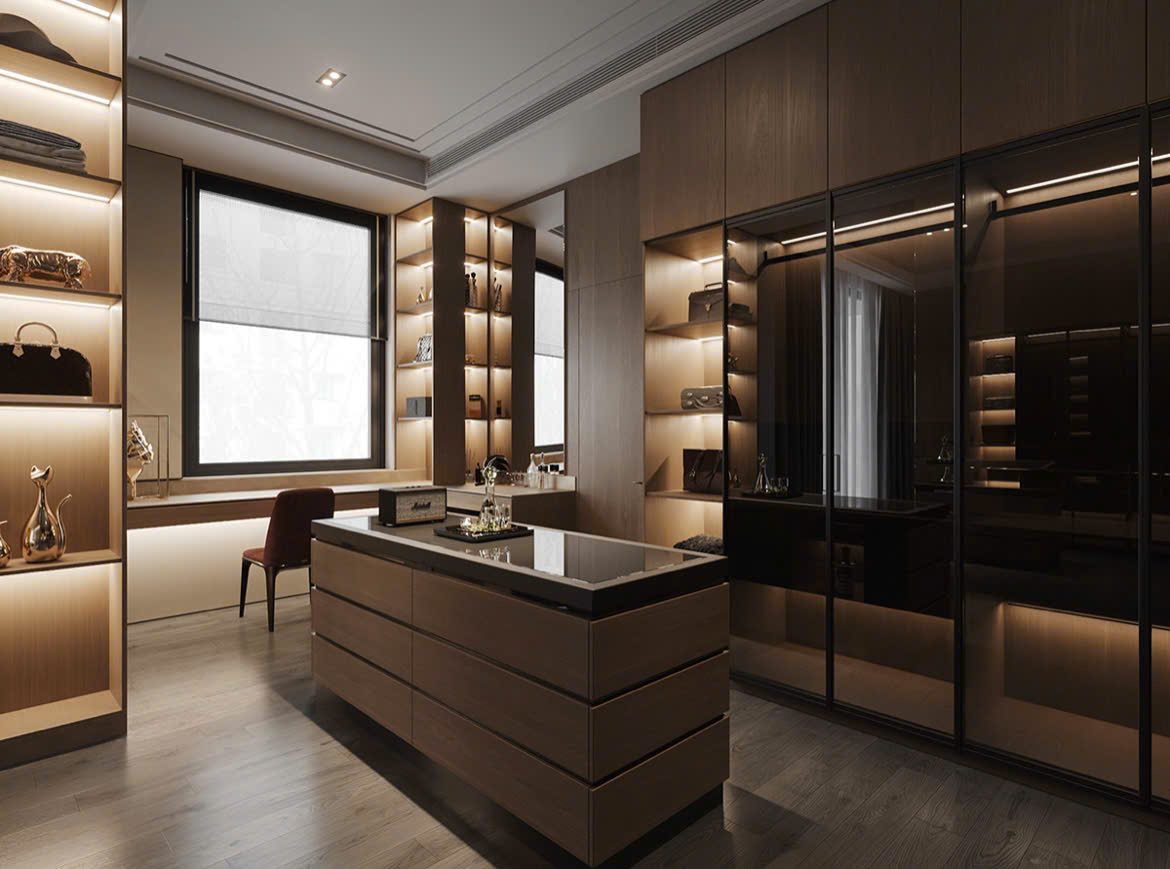 - Tủ kính , đèn LED âm: Như bước vào boutique thời trang cao cấp.