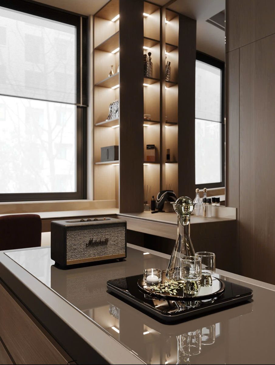 - Đèn hắt nhẹ làm nổi bật đồ decor.