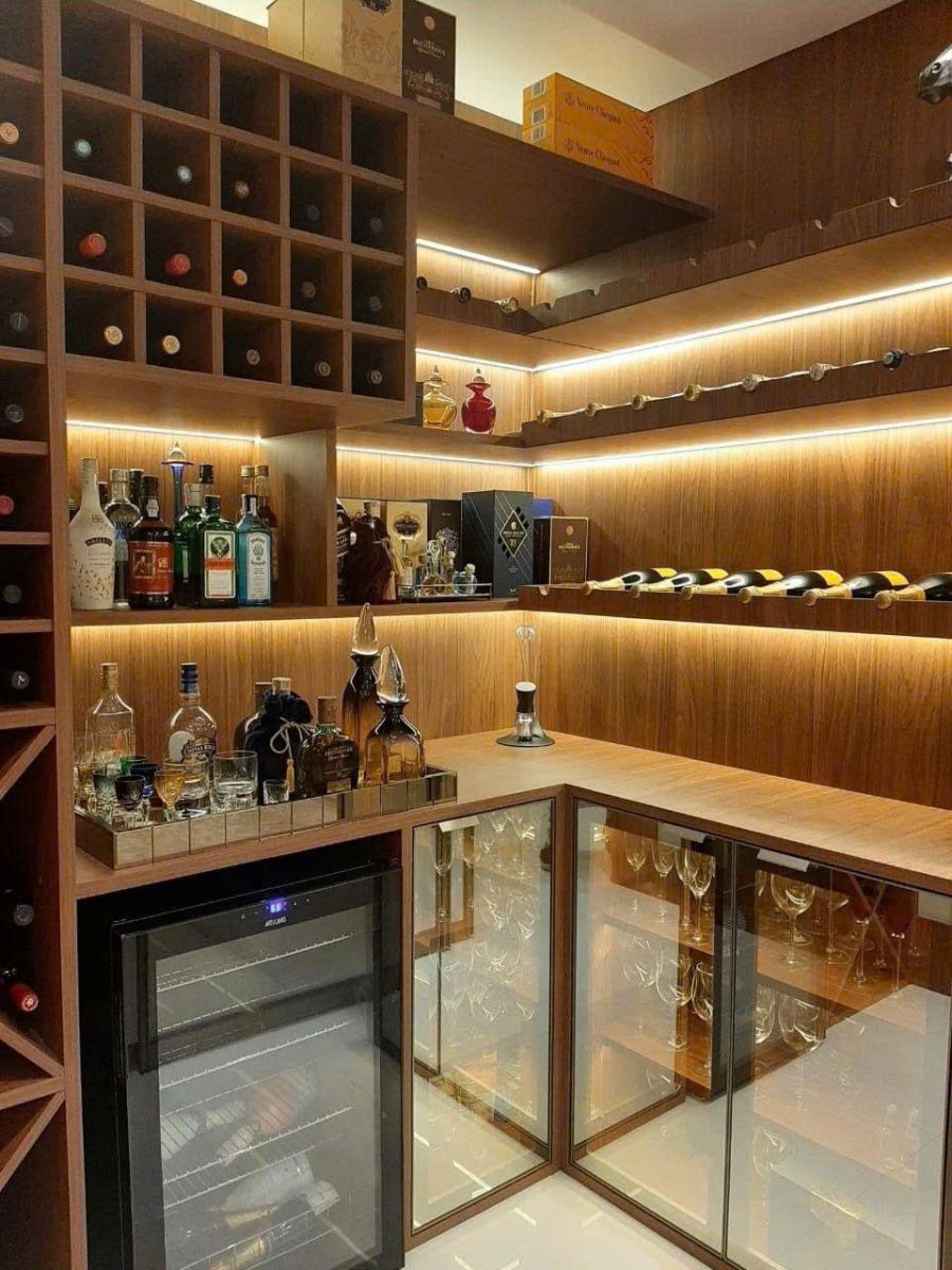 - Tủ rượu là điểm nhấn nghệ thuật trong không gian sống.