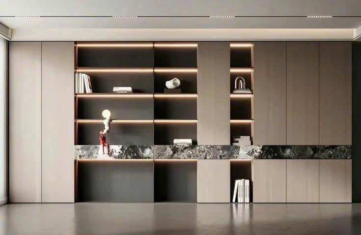 - Kệ kết hợp tủ: vừa trưng bày – vừa lưu trữ, luôn gọn gàng