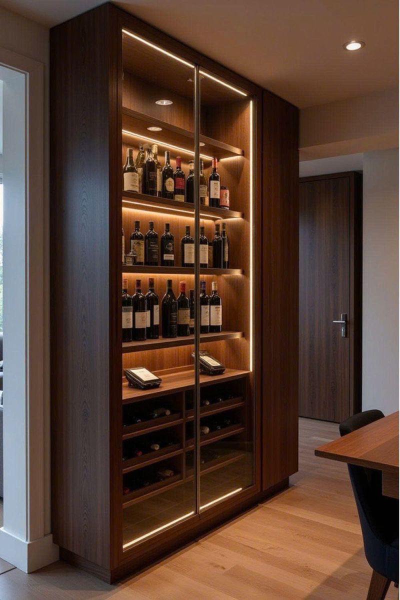 - Ánh sáng phù hợp giúp tủ rượu trở thành điểm nhấn nổi bật.