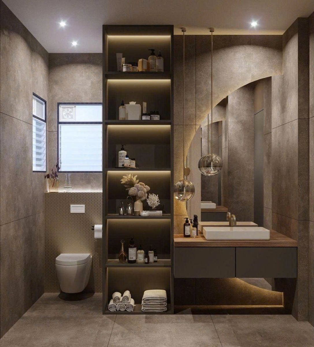 - Kệ âm tường hoặc nổi nhẹ có đèn hắt trang trí tạo điểm nhấn tinh tế.