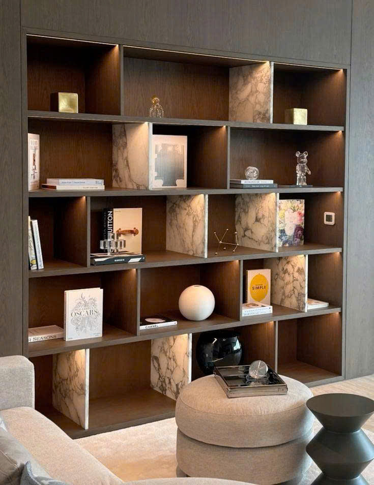 - Kệ kết hợp tủ: vừa trưng bày – vừa lưu trữ.