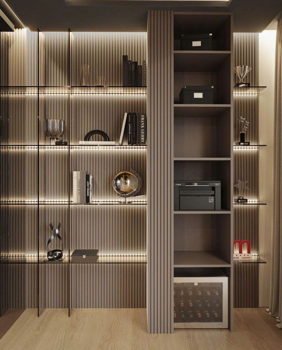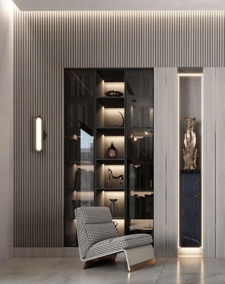 Kệ trưng bày là chi tiết tinh gọn nhưng tạo sức ảnh hưởng lớn, mang lại vẻ đẹp sang trọng và giúp không gian thể hiện rõ phong cách cùng cá tính riêng.