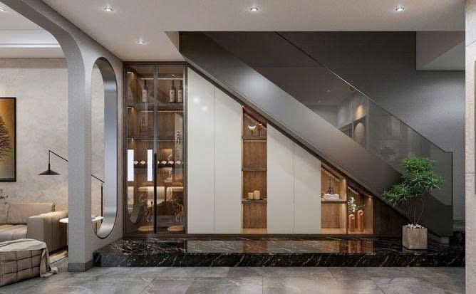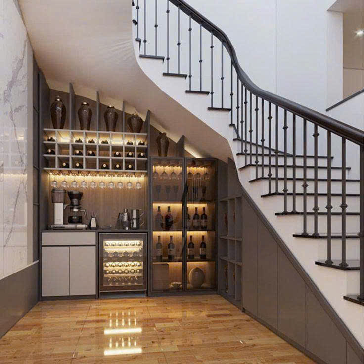 5. Biến gầm cầu thang thành tủ rượu sang trọng
