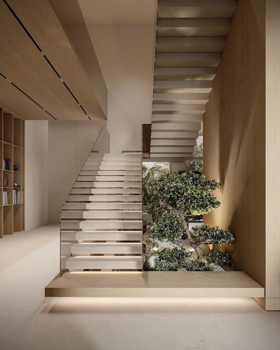 - Cầu thang nổi: lơ lửng giữa không trung, đậm tinh thần tối giản.