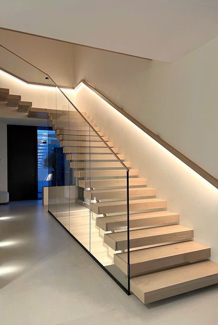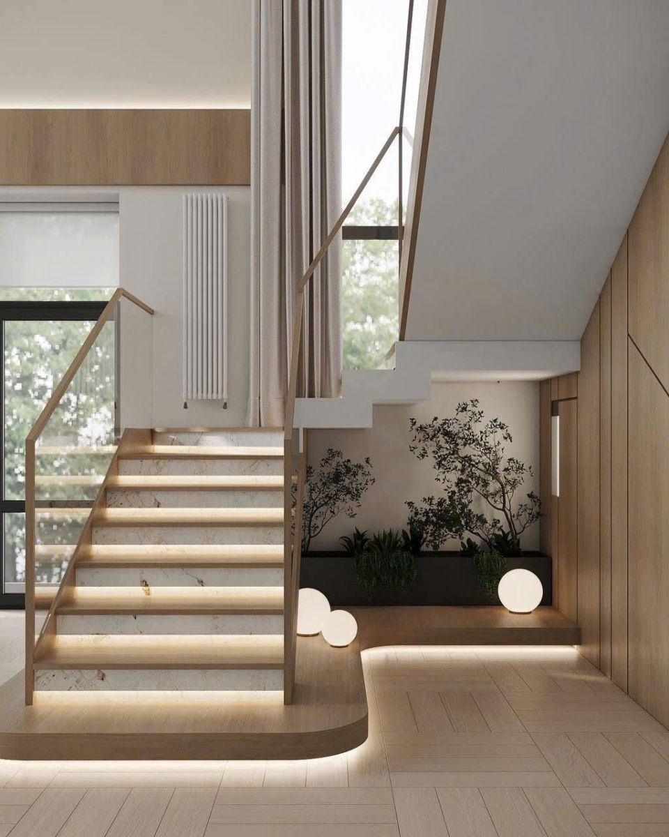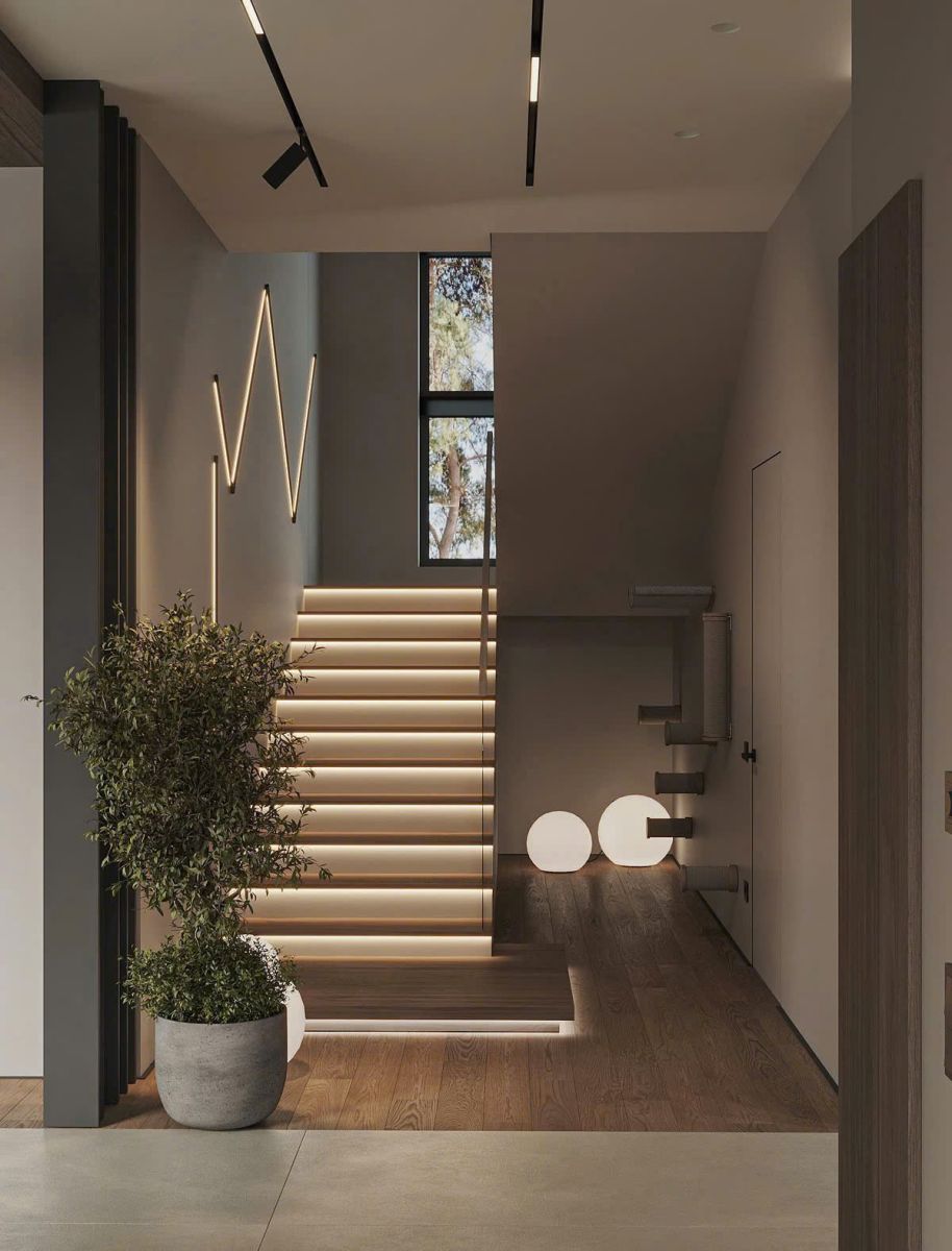 - Ánh sáng là linh hồn của cầu thang hiện đại.