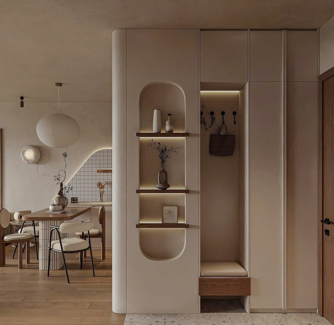 - Tích hợp công năng kép: kệ trang trí, tủ chứa đồ.