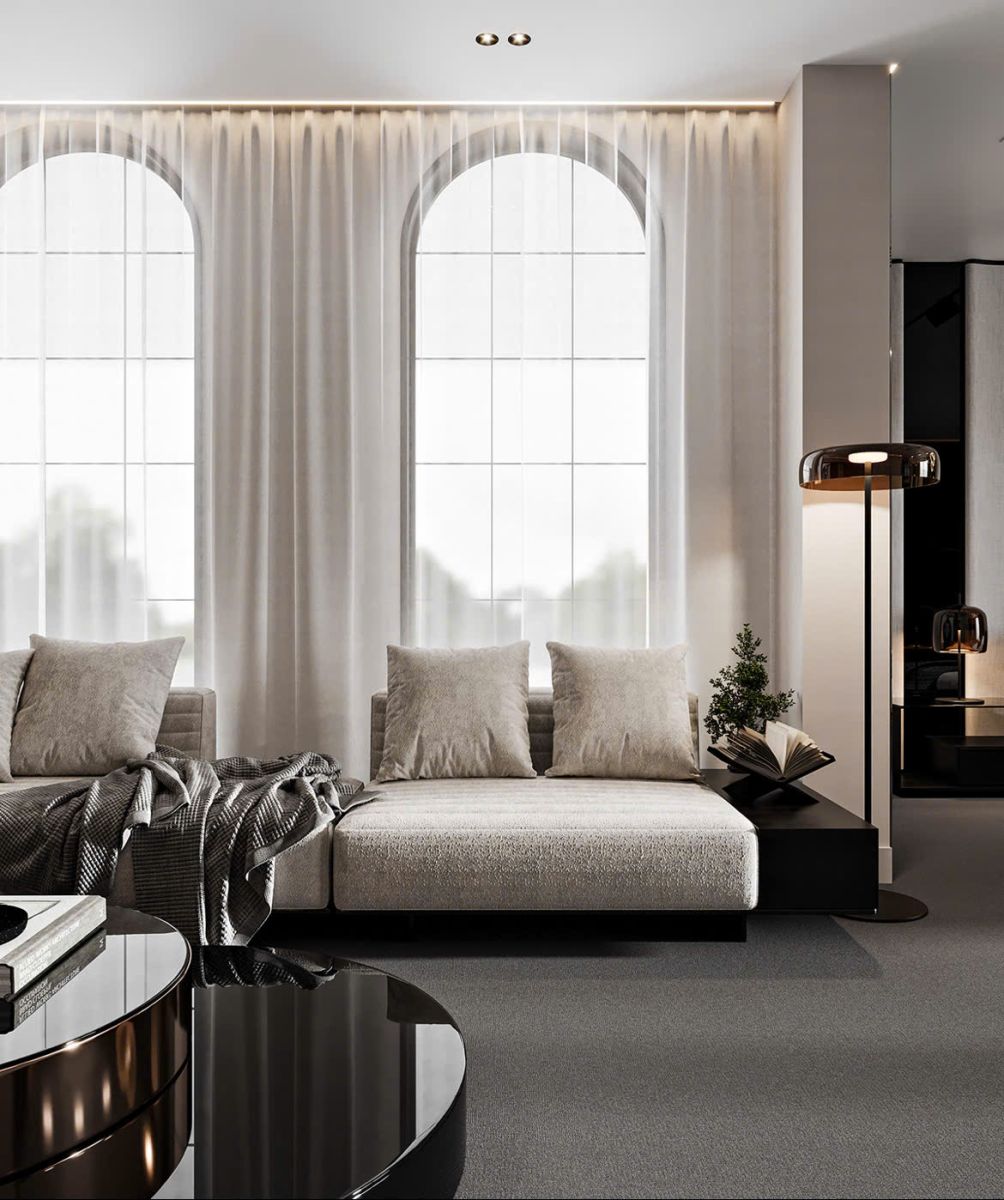 - Rèm trắng mỏng tận dụng ánh sáng tự nhiên.