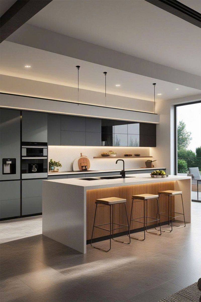 - Đèn LED gầm tủ: tăng tính thẩm mỹ và hỗ trợ thao tác nấu ăn.