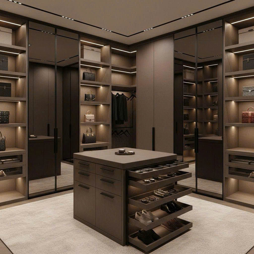 Cánh tủ mở ra, từng món trang phục hiện lên trong trật tự tinh tế. Phòng thay đồ không chỉ lưu trữ, mà tôn vinh gu thẩm mỹ và phong cách sống, biến mỗi khoảnh khắc lựa chọn trang phục thành trải nghiệm sang trọng mỗi ngày.
