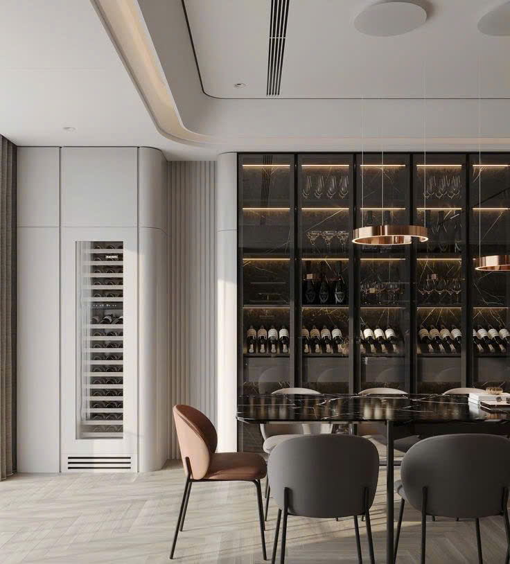 Trong nội thất hiện đại, tủ rượu không còn xa xỉ. Từ căn hộ đến nhà phố, townhouse, tủ rượu trở thành điểm nhấn thẩm mỹ. Không chỉ lưu trữ, nó kể câu chuyện về gu sống, cá tính và đẳng cấp của gia chủ.