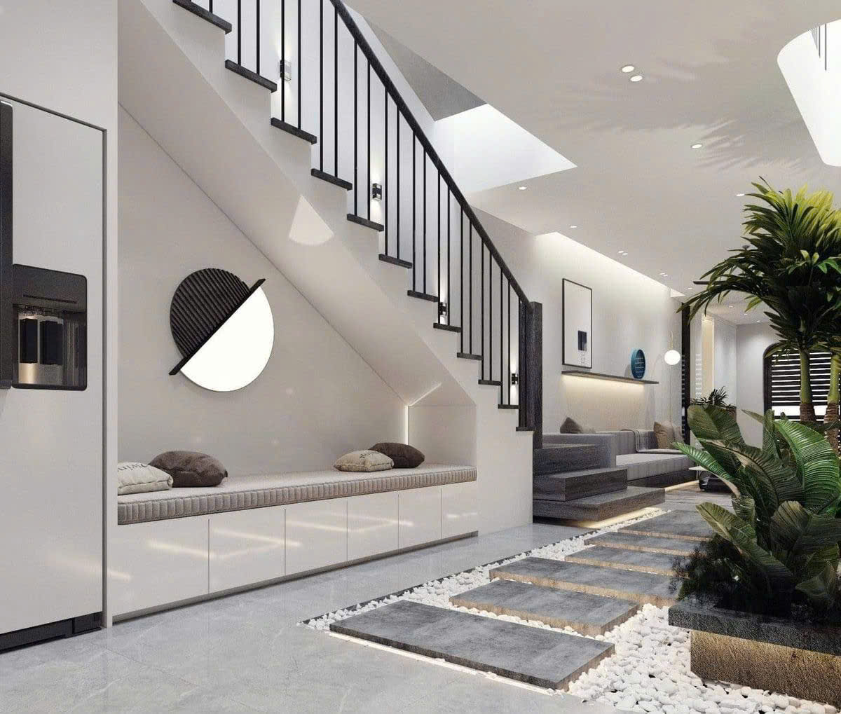 - Tạo chiều sâu, điểm nhấn thị giác cho khu vực cầu thang.