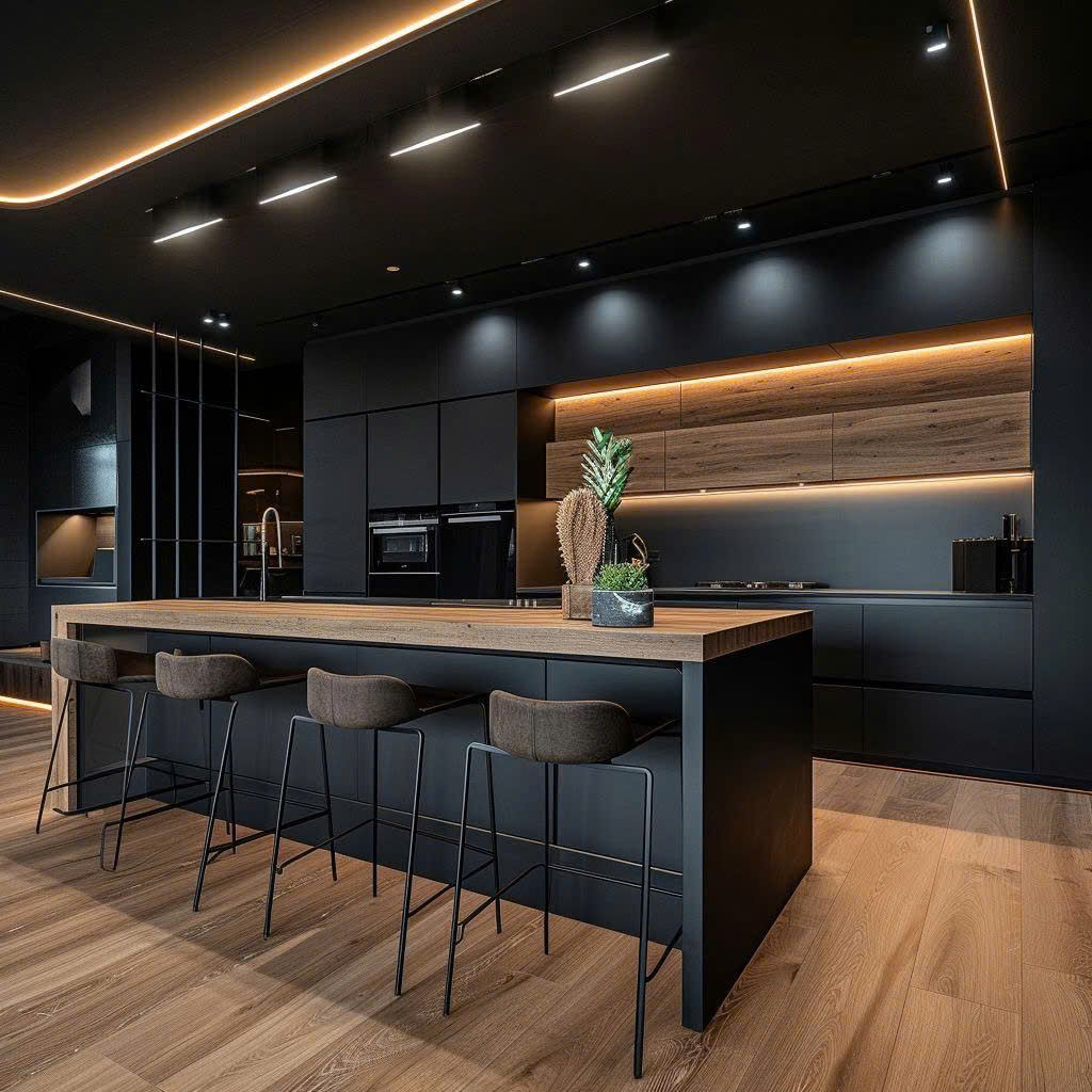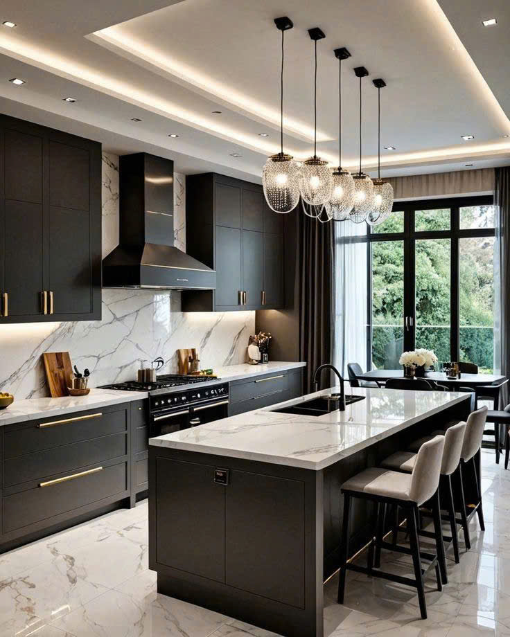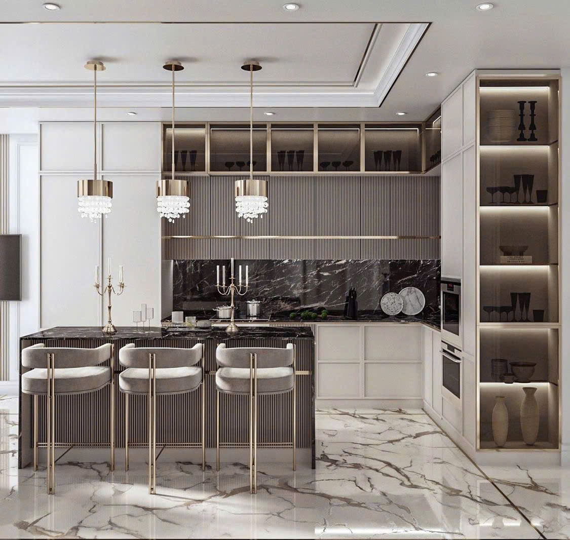 - Thiết bị hiện đại: bếp từ, máy hút mùi, máy rửa chén, lò âm tủ.