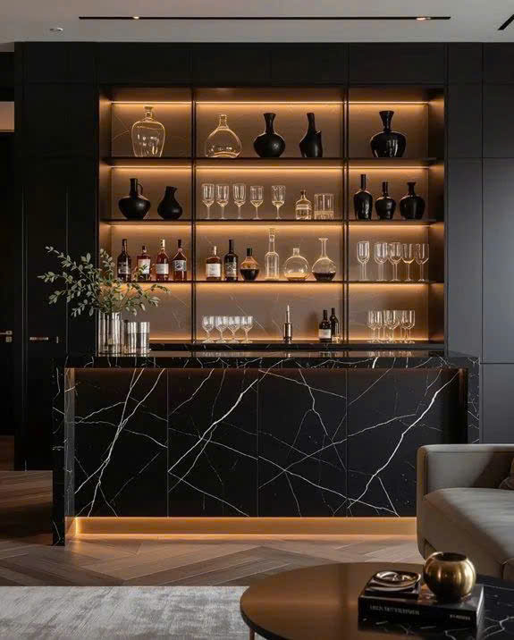 Một kệ rượu nghệ thuật không chỉ lưu giữ những chai rượu quý mà còn là “tuyên ngôn thẩm mỹ” thể hiện gu thẩm mỹ tinh tế của gia chủ, tạo điểm nhấn sang trọng cho mọi không gian.