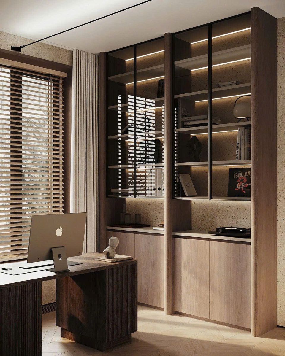 - Kệ kết hợp tủ kín: vừa trưng bày, vừa lưu trữ.