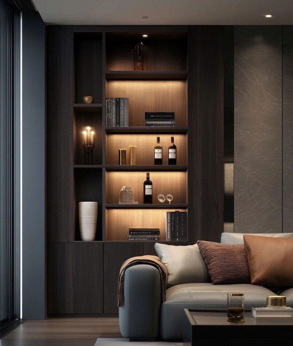 1. Kệ trưng bày – “điểm chạm” định hình thẩm mỹ không gian