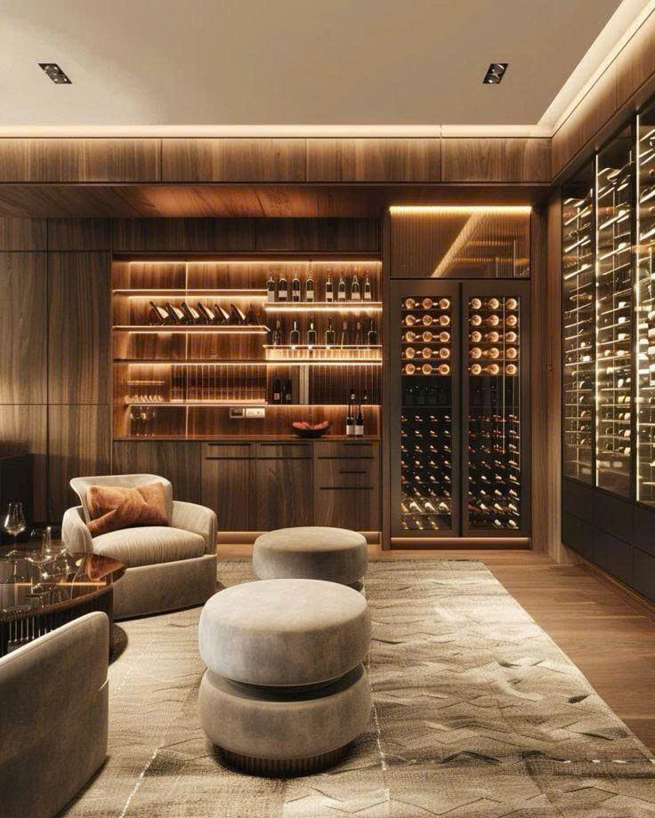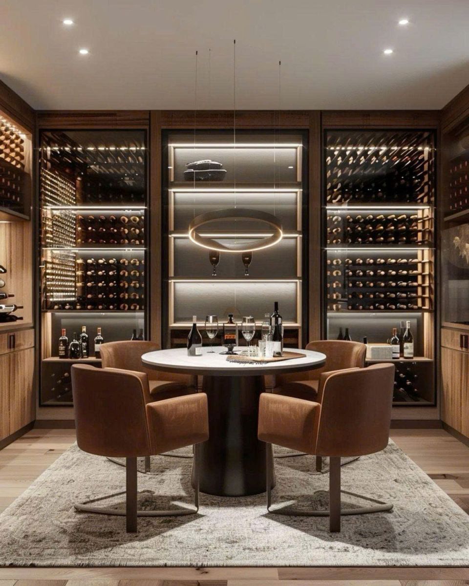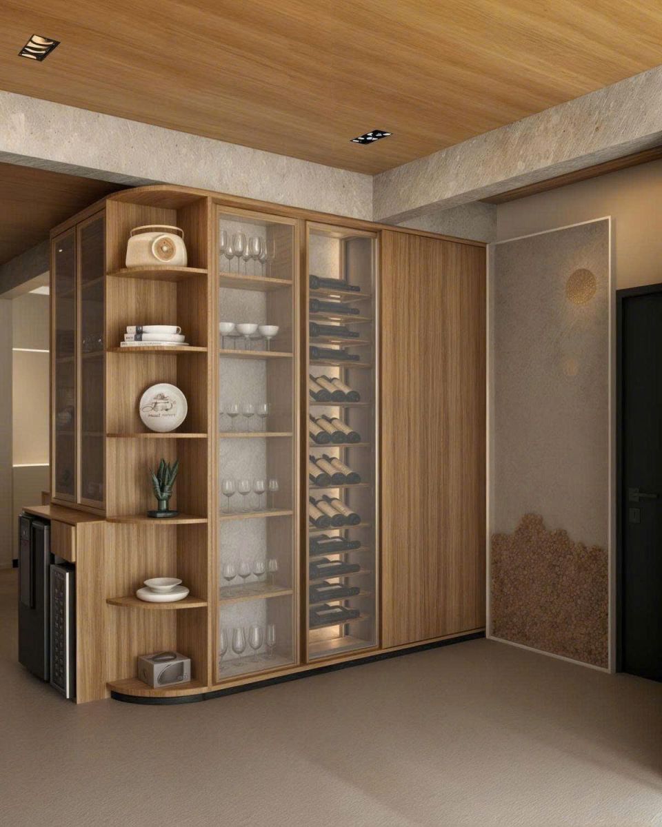 Trong ánh đèn dịu nhẹ của phòng khách, tủ rượu lặng lẽ hiện diện như một góc ký ức sang trọng. Không chỉ lưu trữ chai rượu, nó kể câu chuyện về gu sống và dấu ấn của chủ nhà.