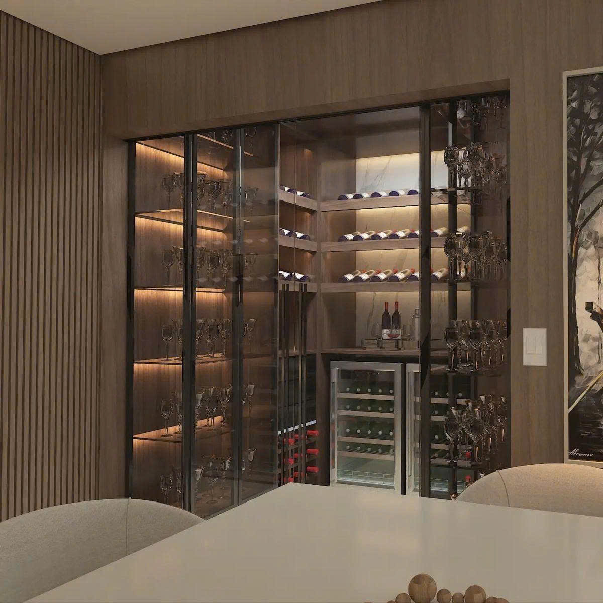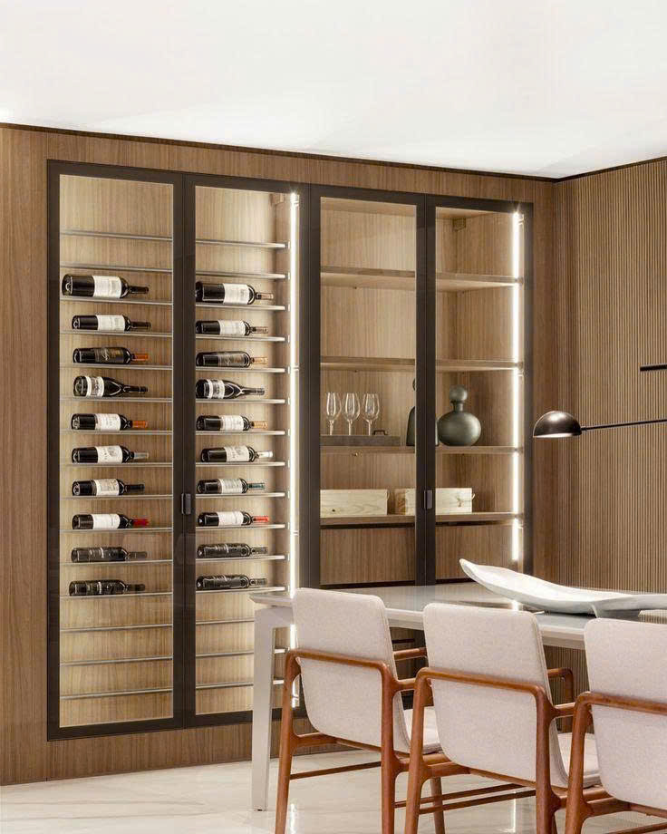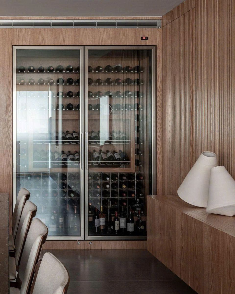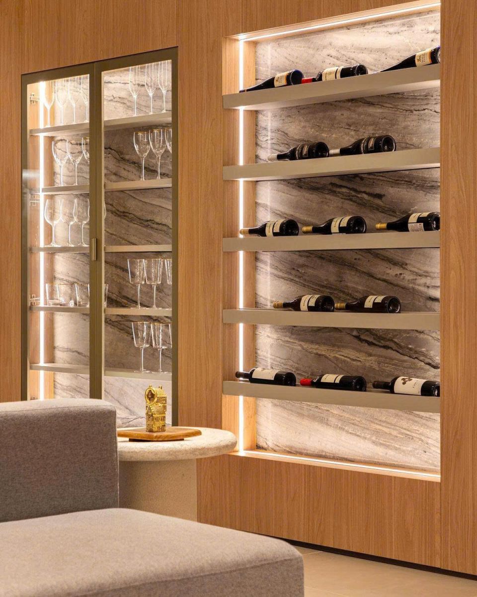 Khi được đặt trong tư duy kiến trúc chuẩn mực, không còn là chi tiết trang trí mà trở thành một phần của cấu trúc không gian. Sự cân bằng giữa vật liệu, ánh sáng và tỷ lệ thiết kế giúp tủ rượu trở thành điểm nhấn mang giá trị thẩm mỹ bền vững.