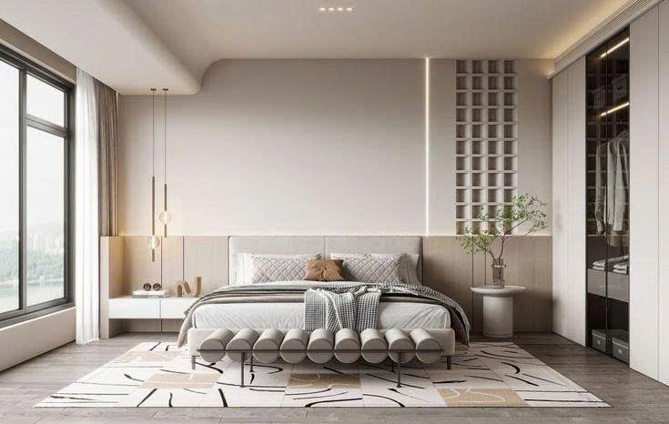 - Nên phân chia rõ ràng khu ngủ – tủ áo – bàn trang điểm.