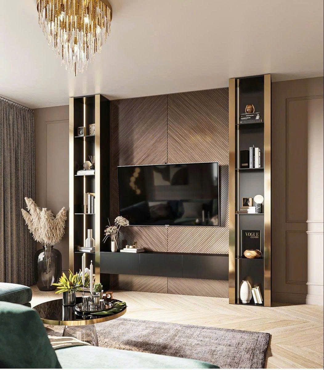 - Một phòng khách đẹp thường bắt đầu từ vách tivi được thiết kế chỉn chu.