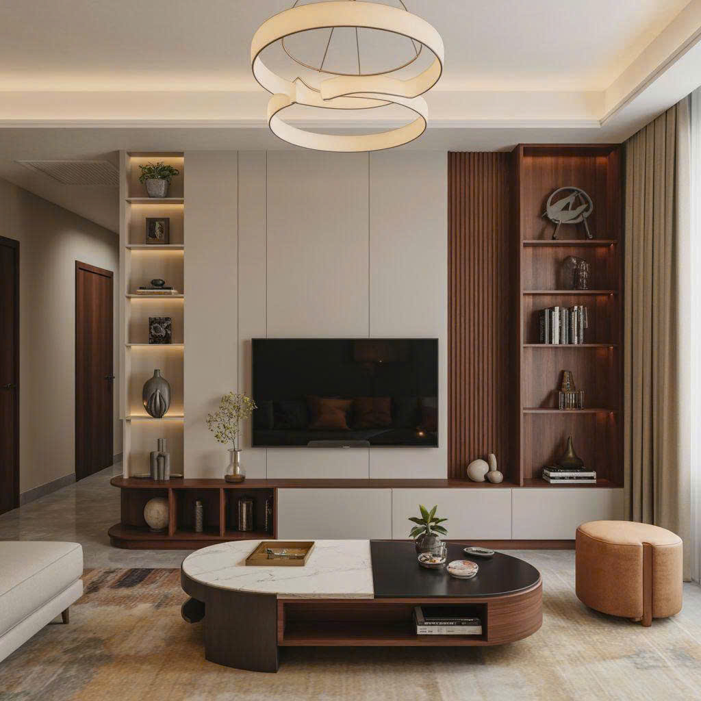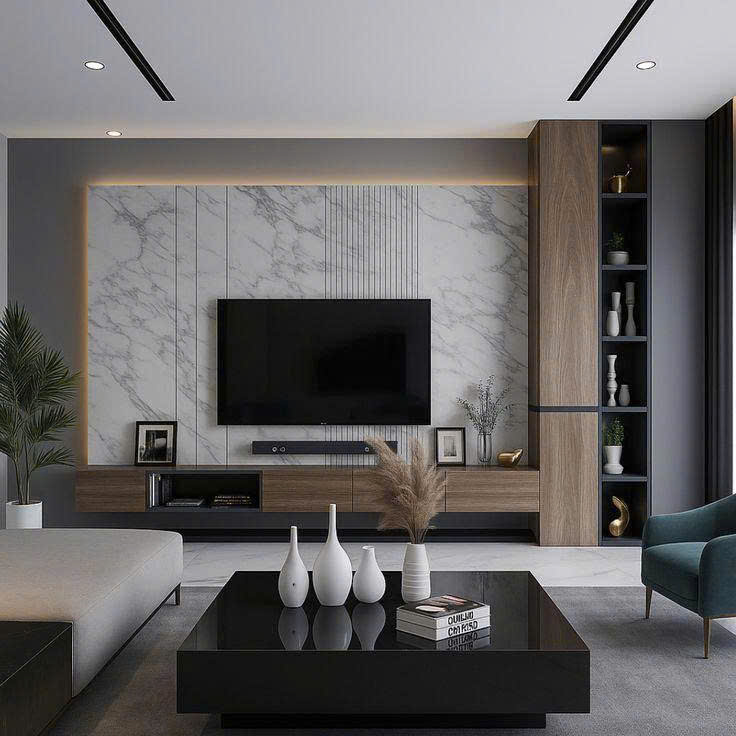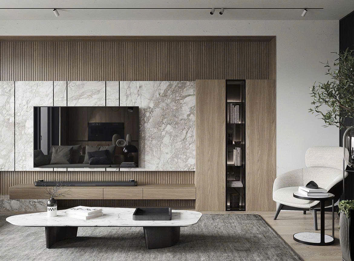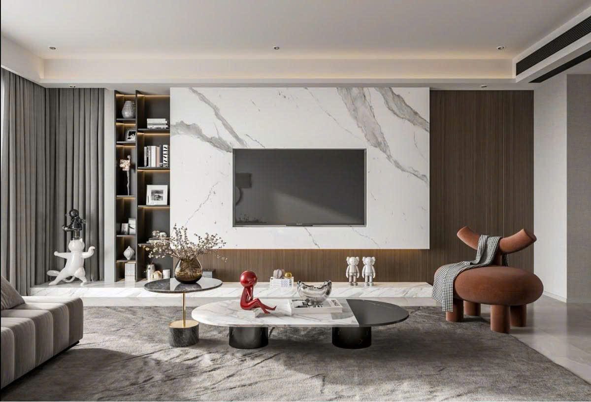 Trong thiết kế hiện đại, vách tivi không chỉ là nơi đặt màn hình mà còn là mảng kiến trúc tạo điểm nhấn, giúp phòng khách trở nên sang trọng, ngăn nắp và có chiều sâu ngay từ cái nhìn đầu tiên.
