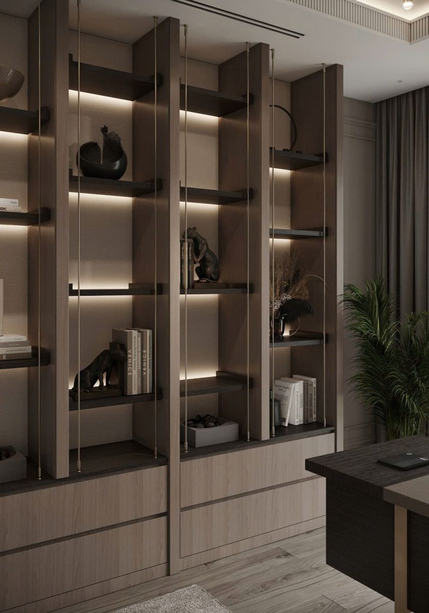 Kệ kết hợp tủ kín: Vừa gọn gàng, vừa tinh tế.