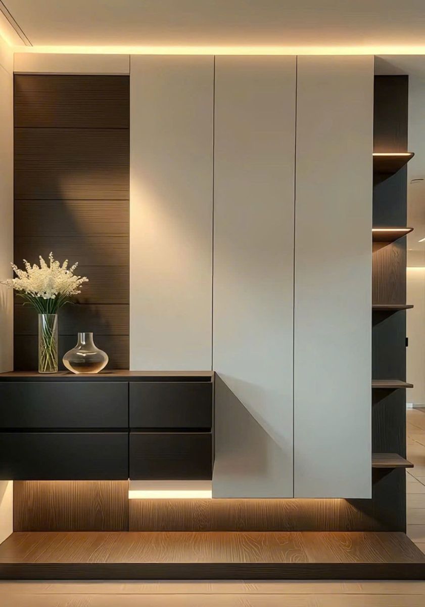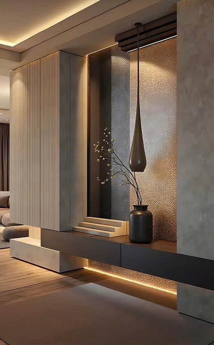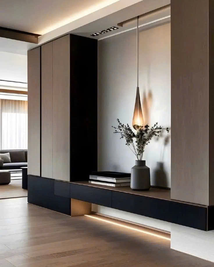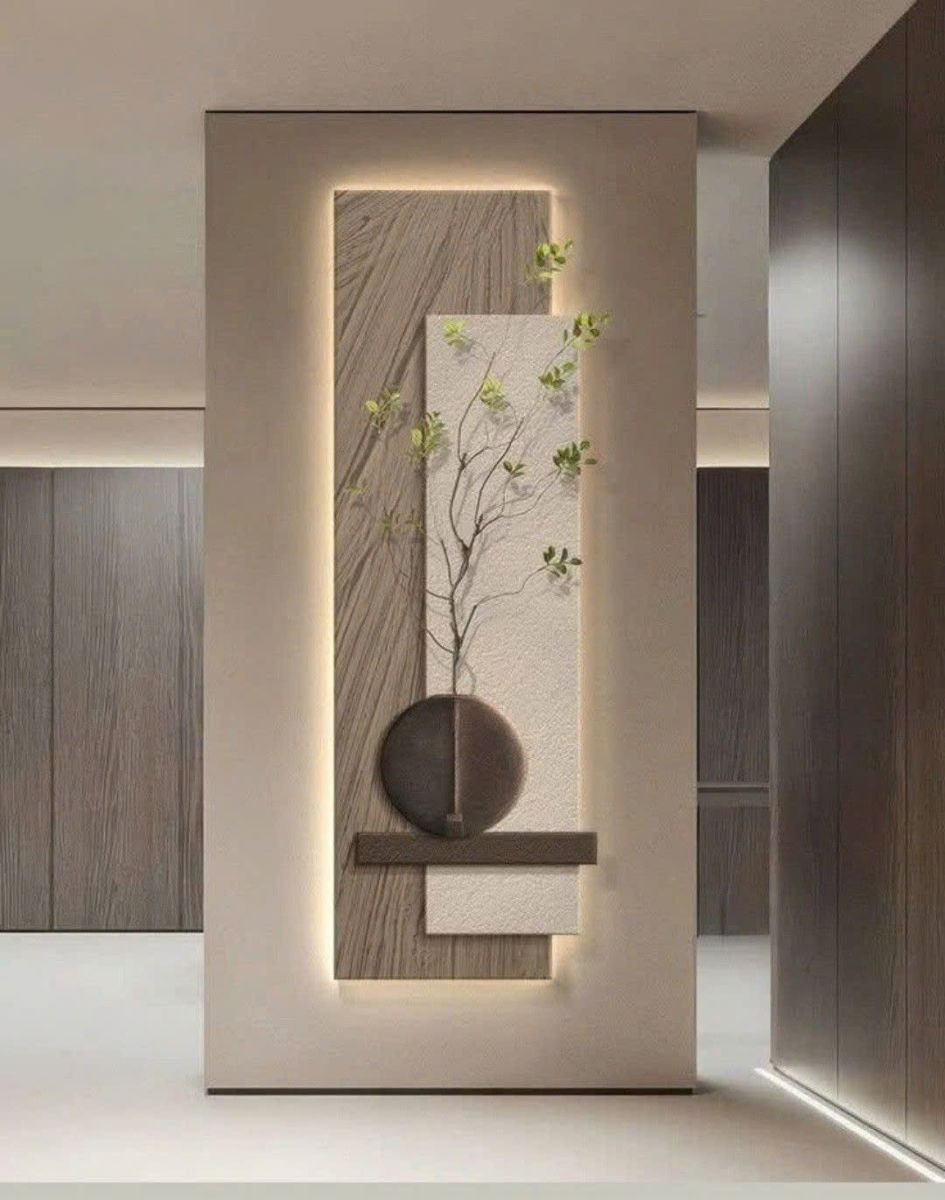 - Vách ngăn có đèn LED tăng chiều sâu và sự sang trọng cho không gian.