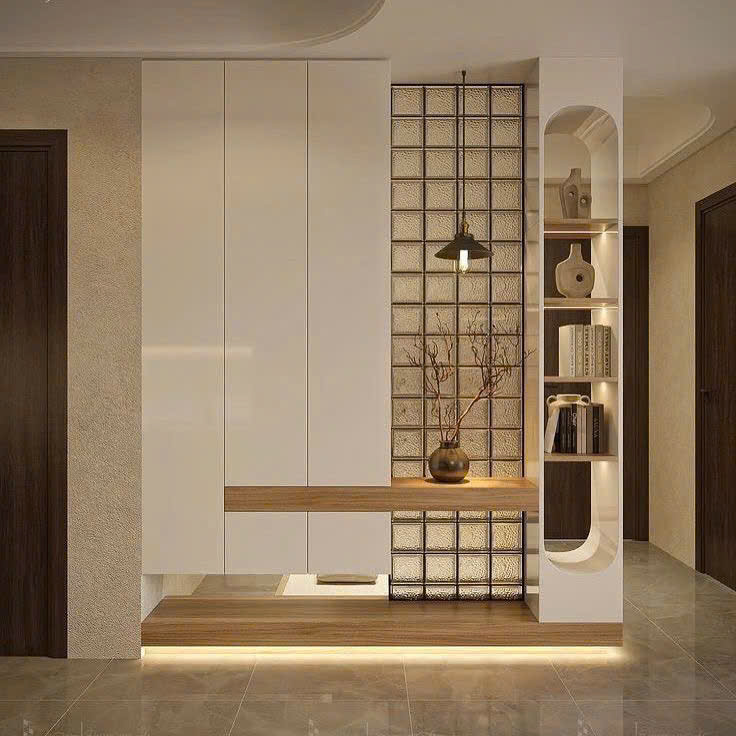 - Vách ngăn kệ decor giúp trưng bày phụ kiện.