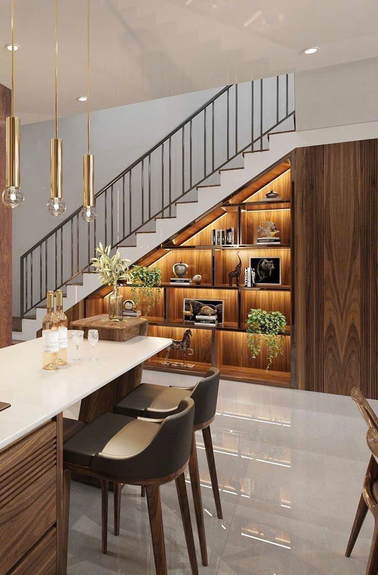 Ẩn sâu dưới những bậc thang tưởng chừng vô nghĩa là “kho báu” thiết kế đầy bất ngờ – nơi biến góc nhỏ thành điểm nhấn tinh tế và đẳng cấp trong ngôi nhà hiện đại.