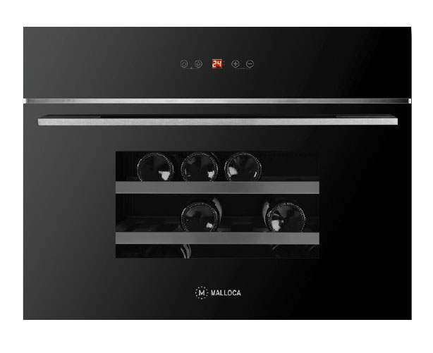 - Các ngăn rượu bằng gỗ với cạnh viền inox