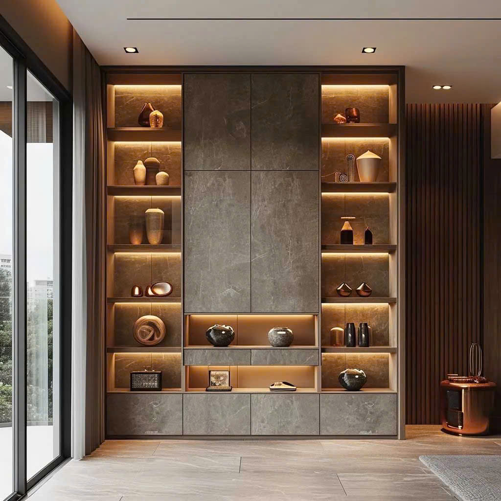 Tủ trưng bày hiện đại 2025 là điểm nhấn thể hiện phong cách sống tinh tế – nơi nghệ thuật, công năng và cảm xúc hòa quyện trong từng đường nét thiết kế.