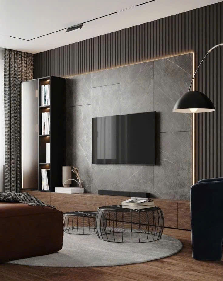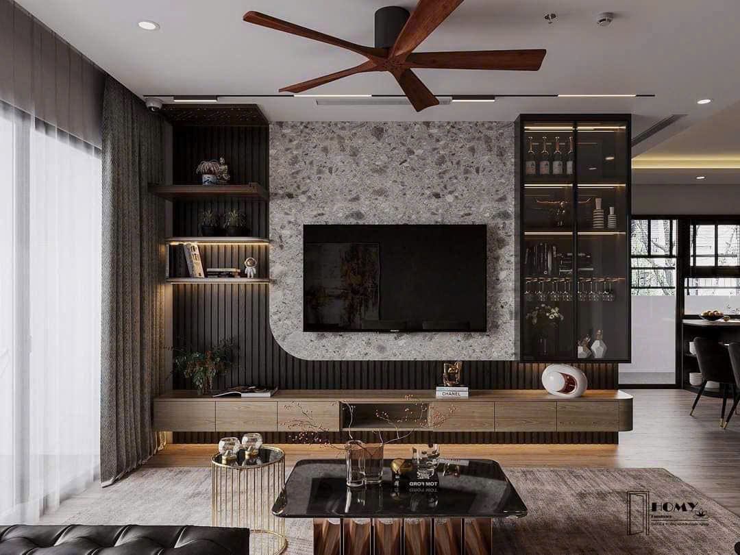 2. Thiết kế vách tivi: tối giản nhưng không đơn điệu