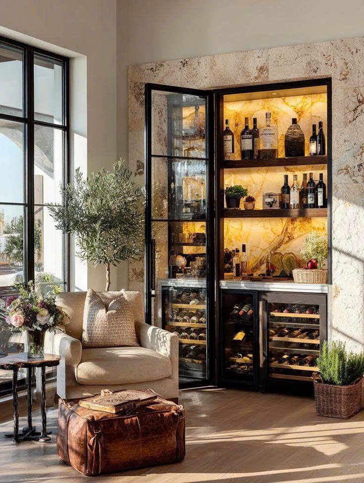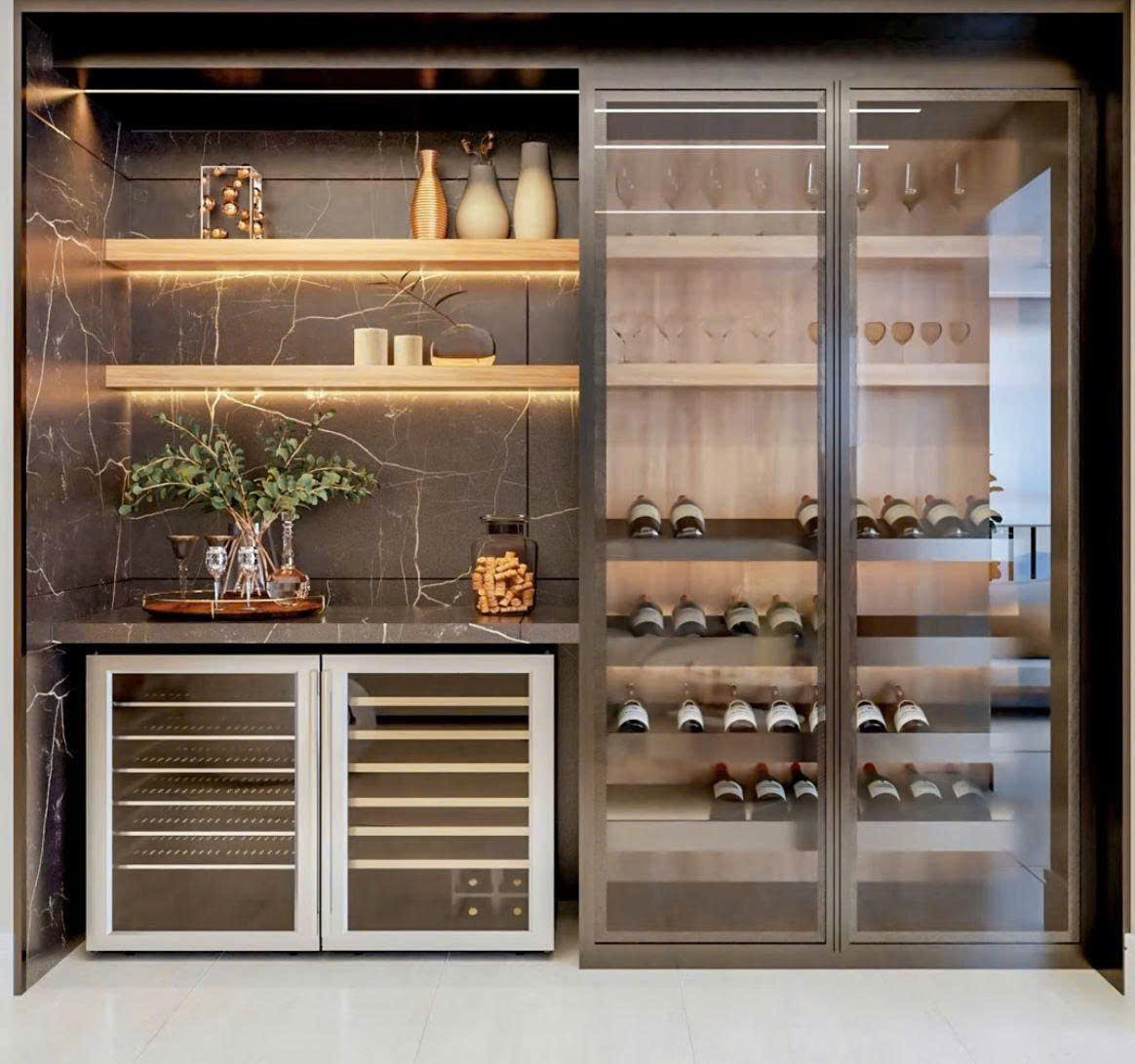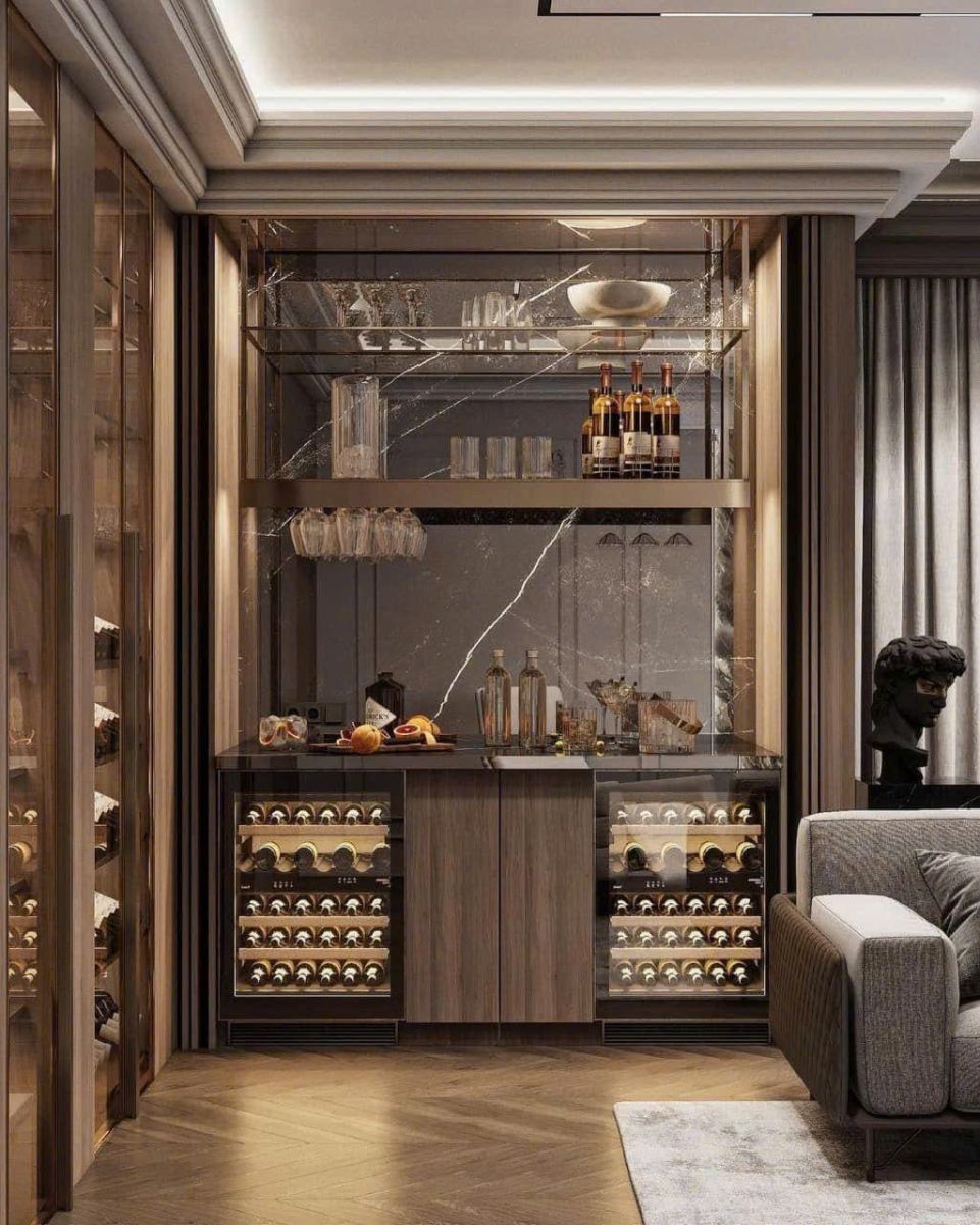 Tủ rượu ngày nay không chỉ phục vụ lưu trữ. Trong nhiều ngôi nhà, đây là chi tiết tạo dấu ấn, phản ánh phong cách sống và góp phần nâng tầm toàn bộ nội thất.